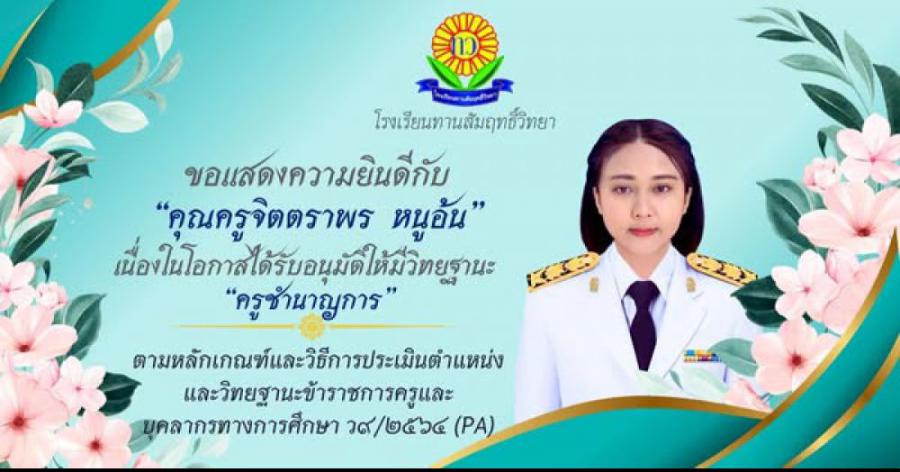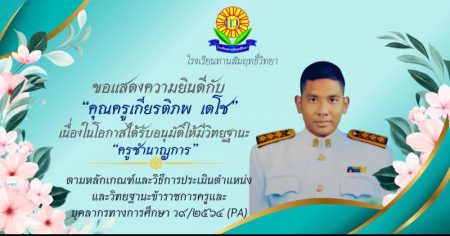 ขอแสดงความยินดีกับ ครูเกียรดิภพ เดโช และครูจิตตราพร หนูอ้น ในโอกาสได้รับอนุมัติให้มีวิทยฐานะ S:0