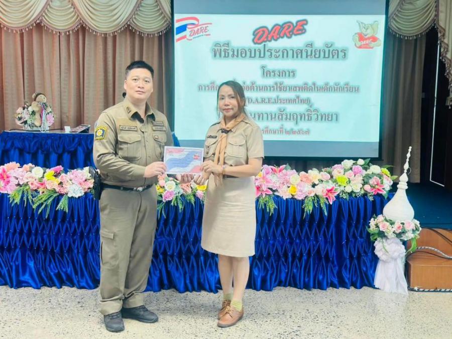 พิธีมอบประกาศนียบัตร และทุนการศึกษา โครงการการศึกษาเพื่อต่อต้านการใช้สารเสพติดในเด็กนักเรียน (D.A.R.E. ประเทศไทย) ประจำปีการศึกษา 2567 ขอขอบคุณวิทยากรตำรวจ D.A.R.E. สถานีตำรวจภูธรเมืองนนทบุรีเป็นอย่างสูงมา ณ โอกาสนี้ S:0