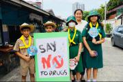 หน่วยลูกเสือจิตอาสาพระราชทาน หน่วยที่ 2 และ 3 เดินรณรงค์และแจกแผ่นพับให้ความรู้เกี่ยวกับโทษภัยและการป้องกันยาเสพติด