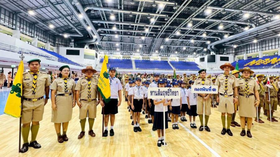 กองลูกเสือสำรอง โรงเรียนทานสัมฤทธิ์วิทยา ร่วมพิธีทบทวนคำปฏิญาณและสวนสนาม เนื่องในโอกาสวันคล้ายวันสถาปนาคณะลูกเสือแห่งชาติ 1 กรกฎาคม ของทุกปี ณ นนทบุรียิมเนเซียม สนามกีฬาจังหวัดนนทบุรี S:0