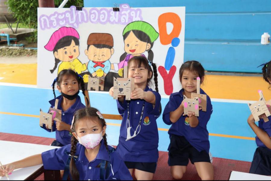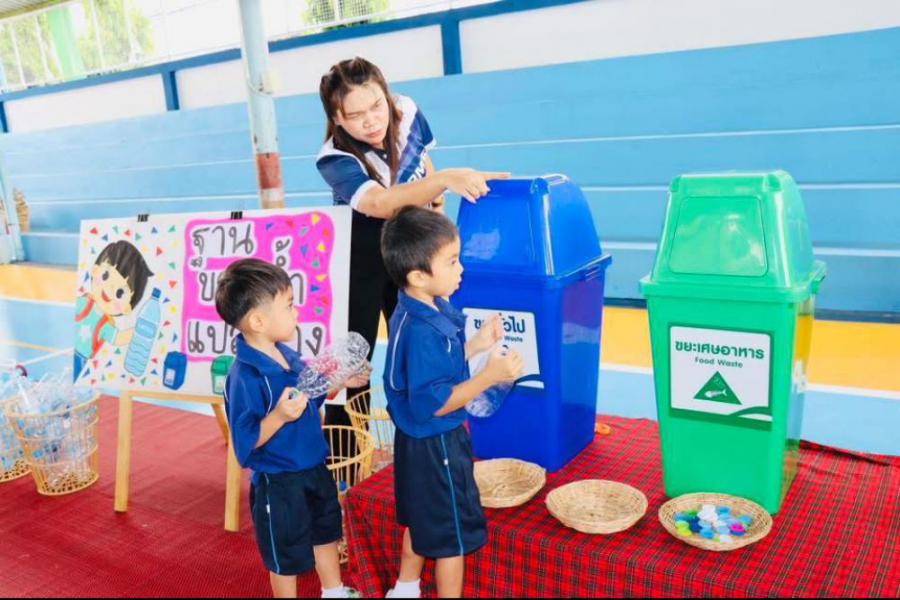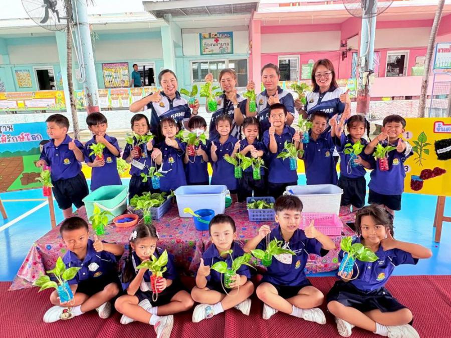 กิจกรรมหนูน้อยรักษ์โลก ปีการศึกษา 2568 เรียนรู้ผ่านกิจกรรม 3 ฐาน ได้แก่ ฐานขวดน้ำแปลงร่าง, ฐานกระปุกออมสิน D.I.Y. และฐานปลูกต้นไม้รักษ์โลก S:0