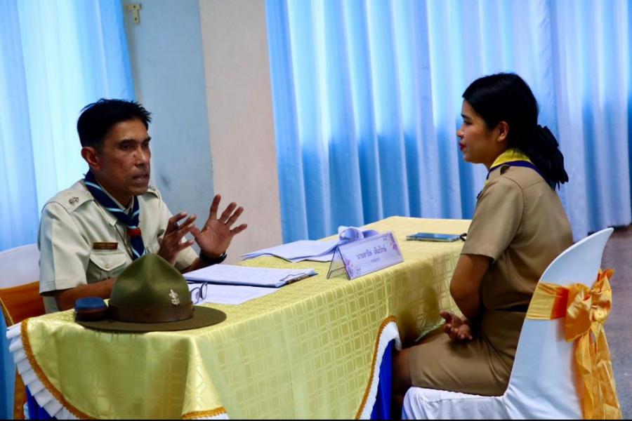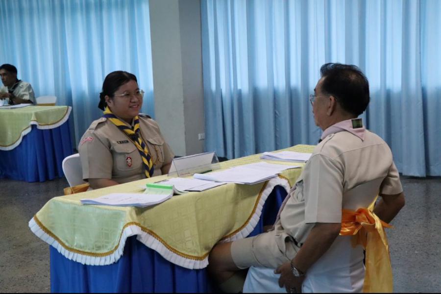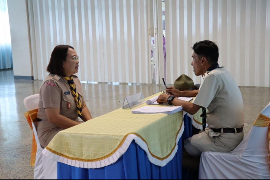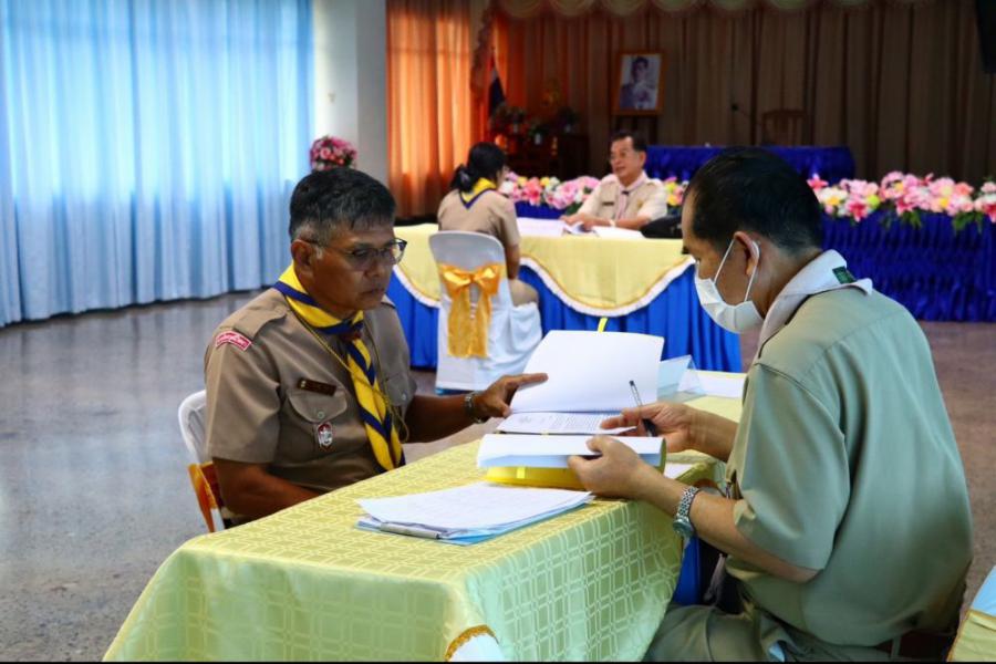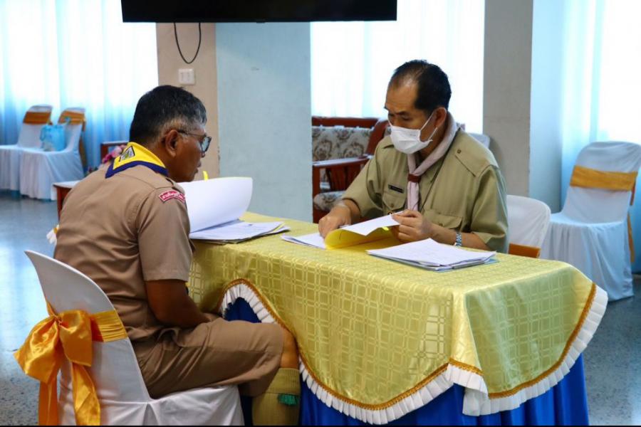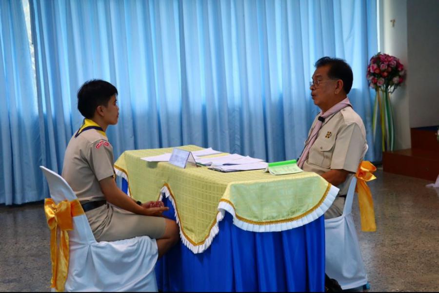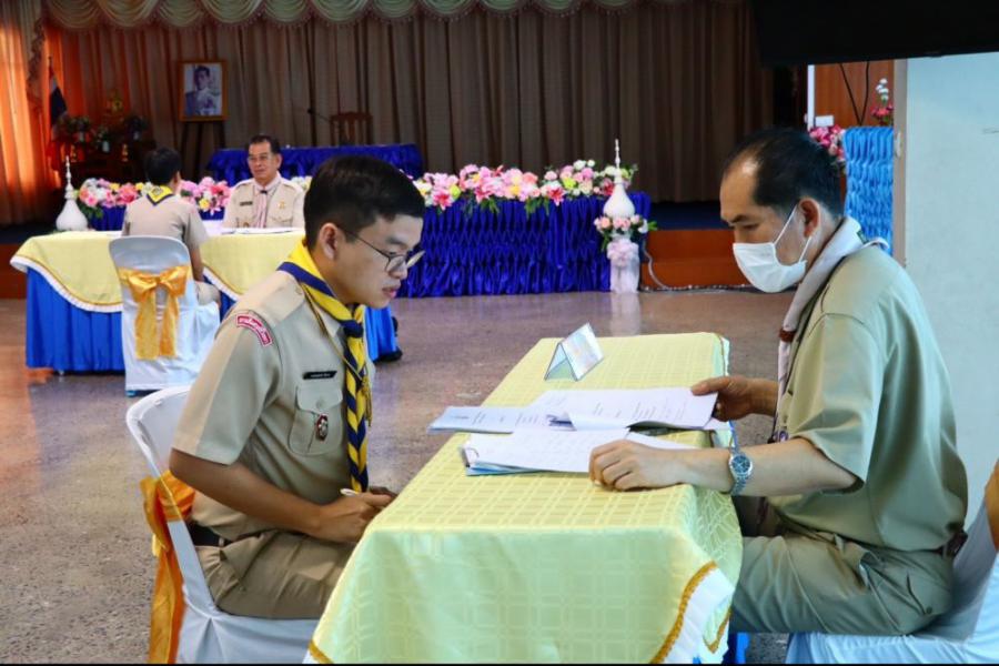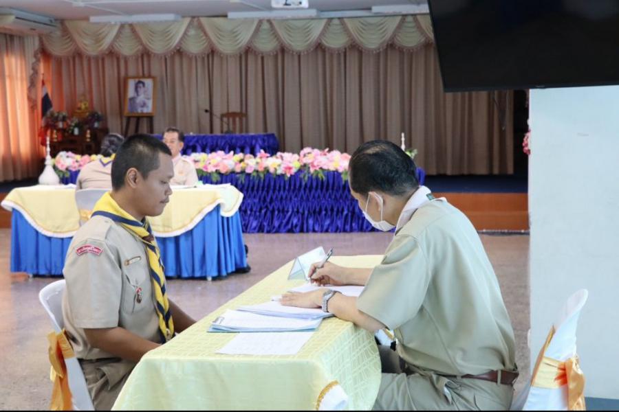 การตรวจขั้นที่ 5 ขั้นปฏิบัติการและประเมินผล เพื่อขอรับเครื่องหมายวูดแบดจ์ 2 ท่อน ผู้บังคับบัญชาลูกเสือสามัญ
