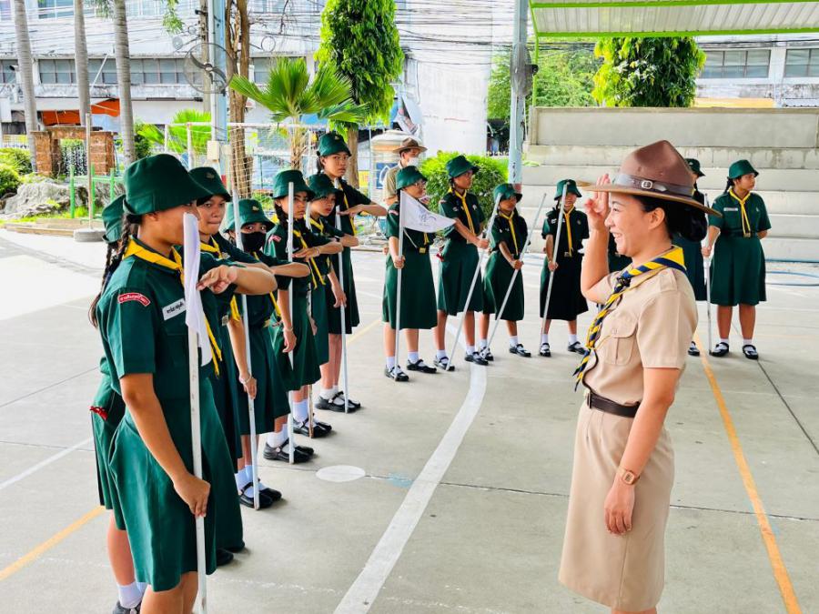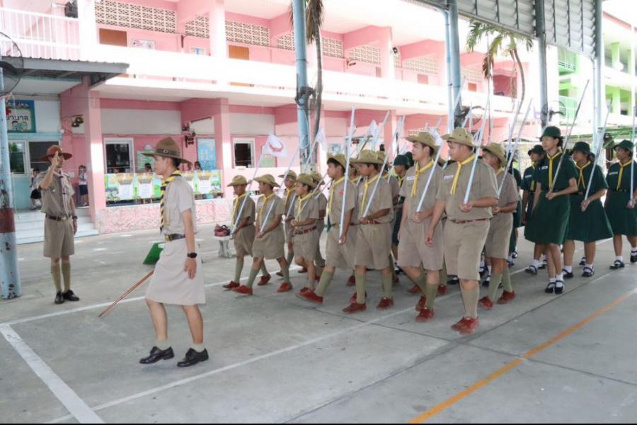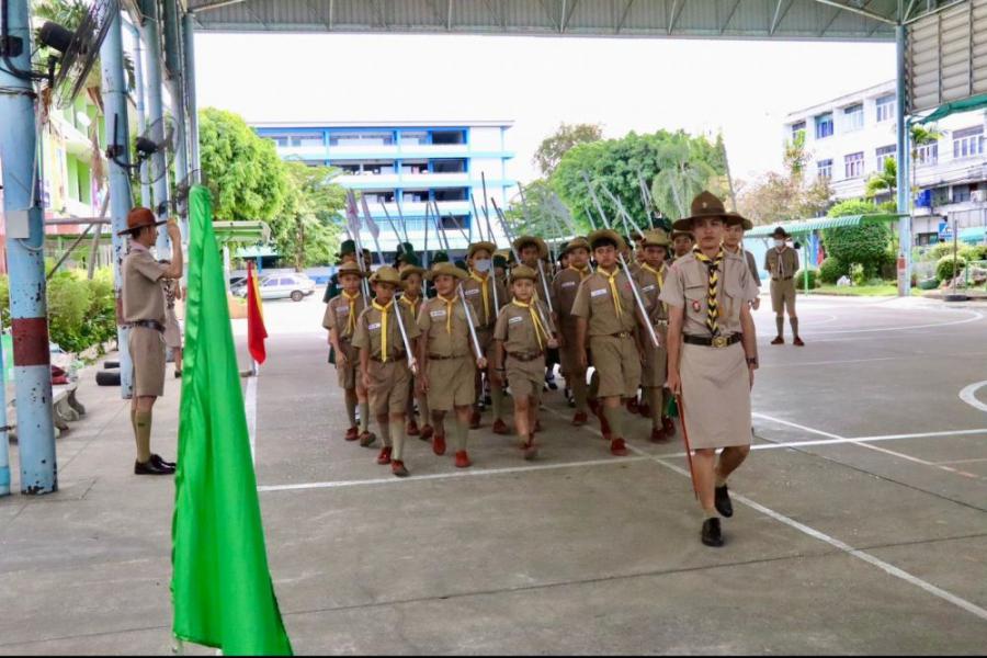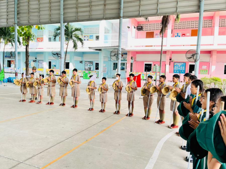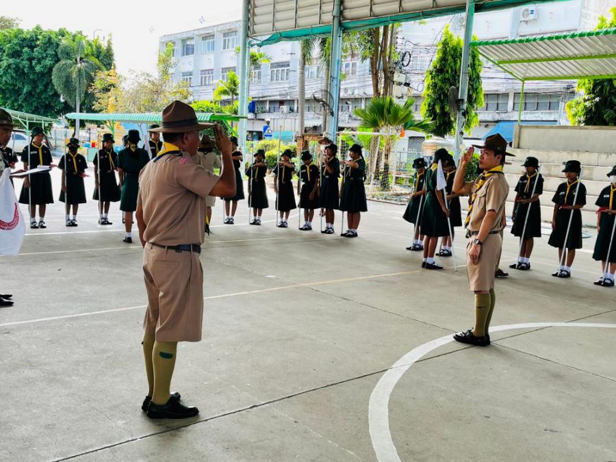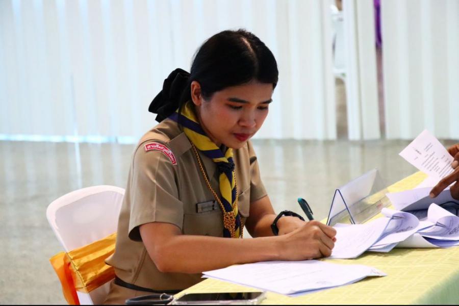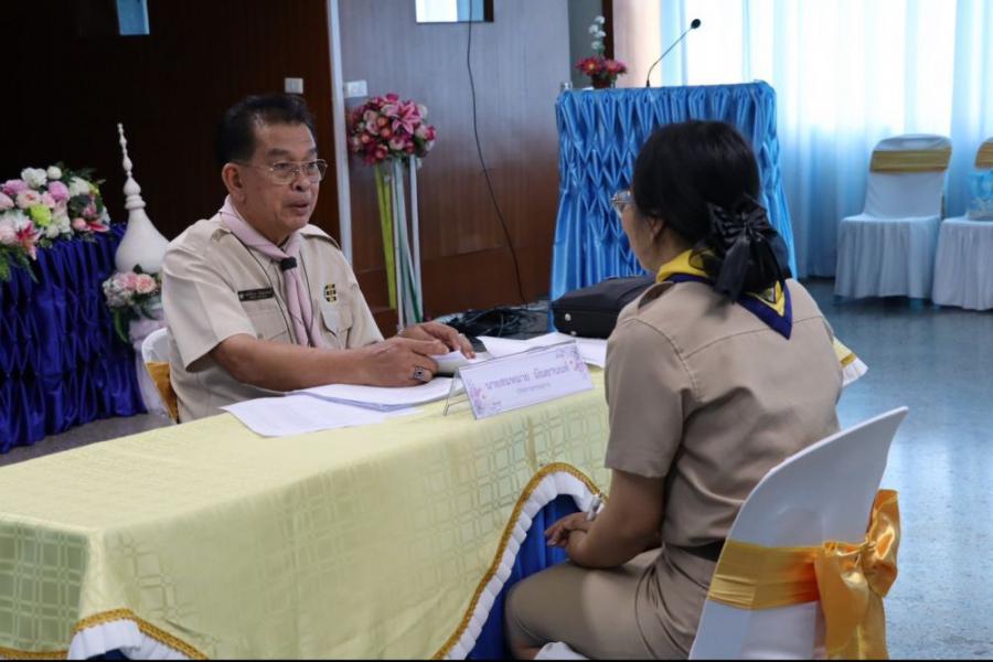 การตรวจขั้นที่ 5 ขั้นปฏิบัติการและประเมินผล เพื่อขอรับเครื่องหมายวูดแบดจ์ 2 ท่อน ผู้บังคับบัญชาลูกเสือสามัญ