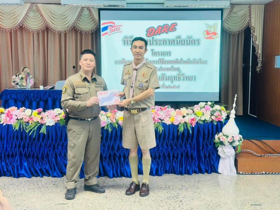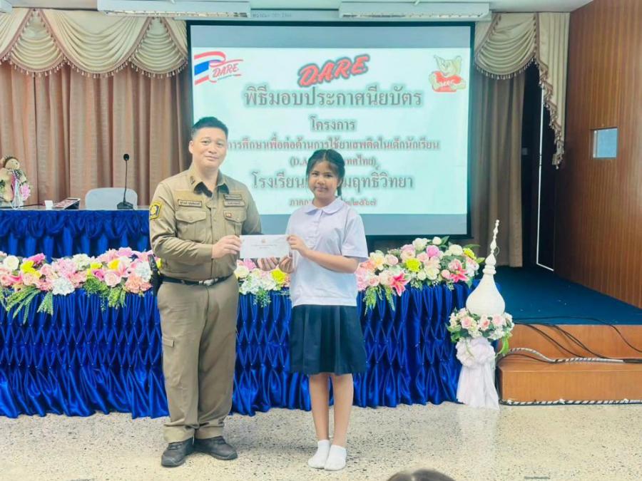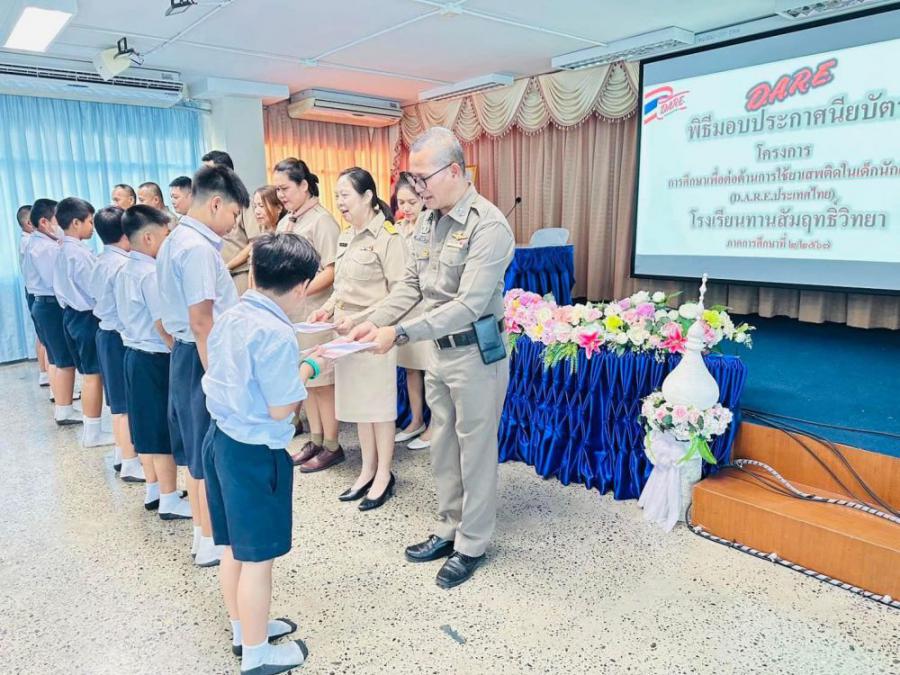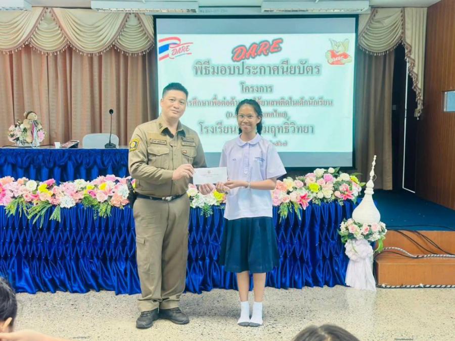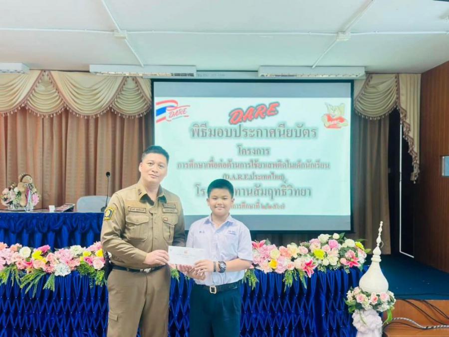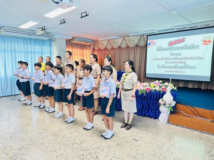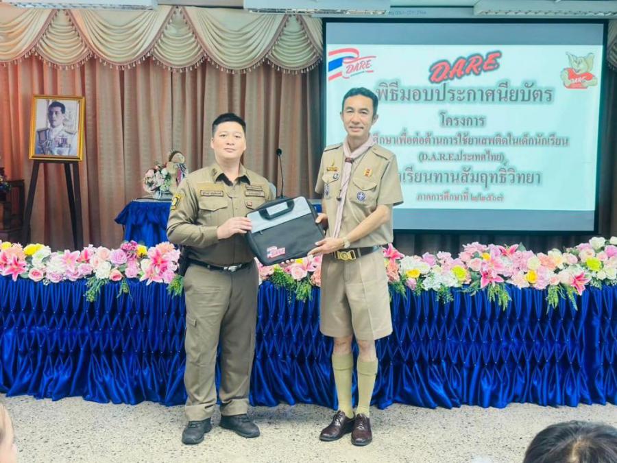 พิธีมอบประกาศนียบัตร และทุนการศึกษา โครงการการศึกษาเพื่อต่อต้านการใช้สารเสพติดในเด็กนักเรียน (D.A.R.E. ประเทศไทย) ประจำปีการศึกษา 2567 ขอขอบคุณวิทยากรตำรวจ D.A.R.E. สถานีตำรวจภูธรเมืองนนทบุรีเป็นอย่างสูงมา ณ โอกาสนี้ S:0