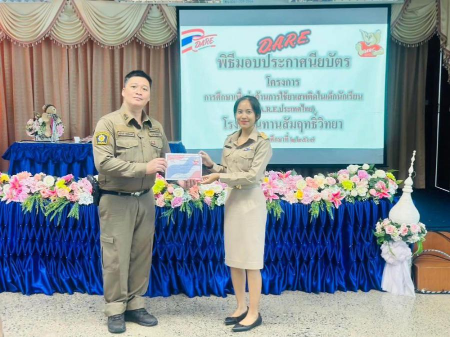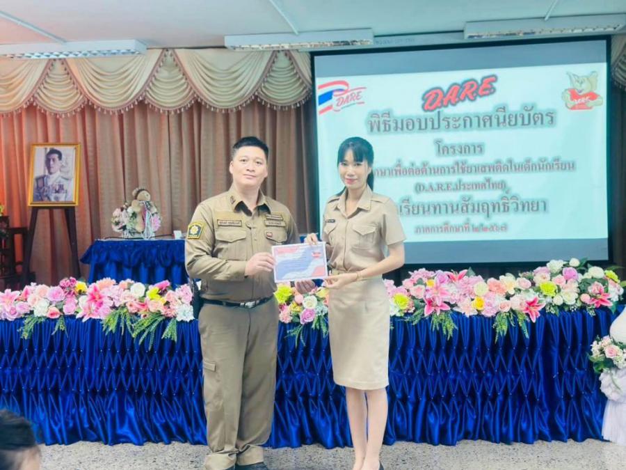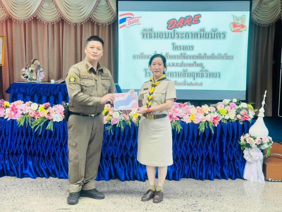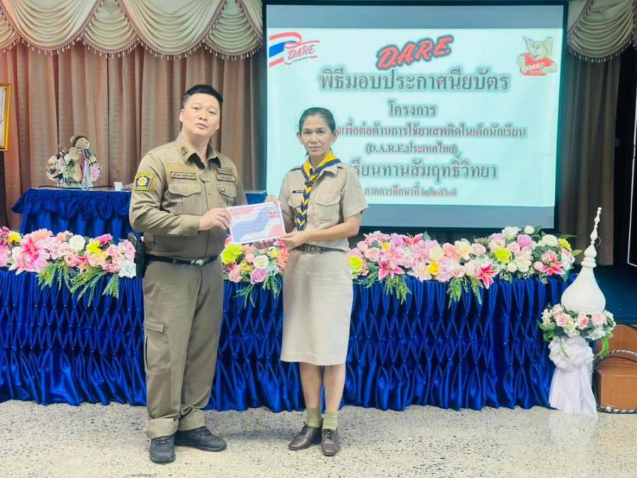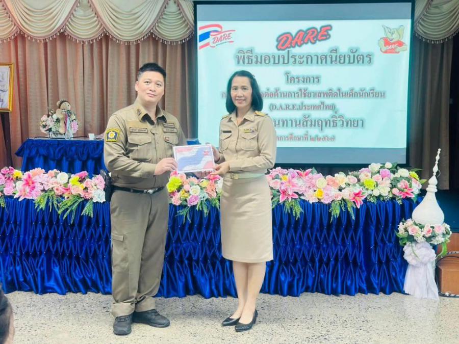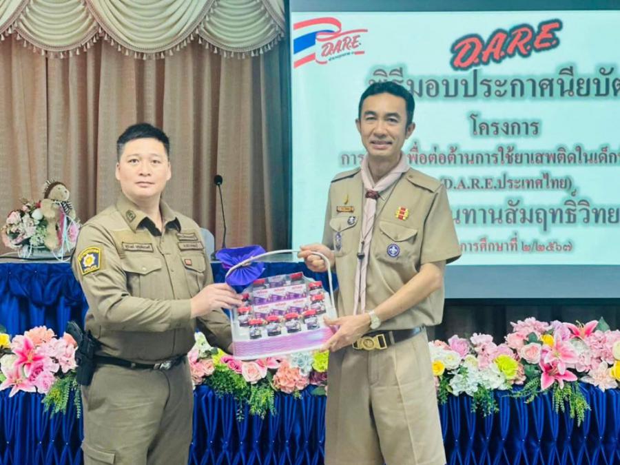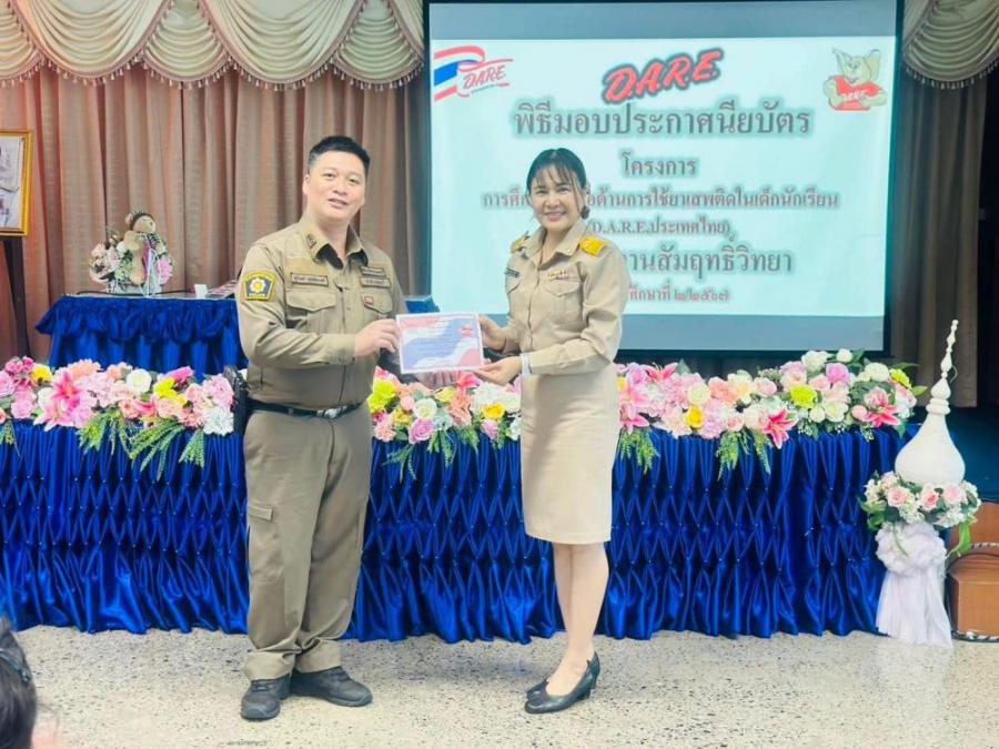 พิธีมอบประกาศนียบัตร และทุนการศึกษา โครงการการศึกษาเพื่อต่อต้านการใช้สารเสพติดในเด็กนักเรียน (D.A.R.E. ประเทศไทย) ประจำปีการศึกษา 2567 ขอขอบคุณวิทยากรตำรวจ D.A.R.E. สถานีตำรวจภูธรเมืองนนทบุรีเป็นอย่างสูงมา ณ โอกาสนี้ S:0