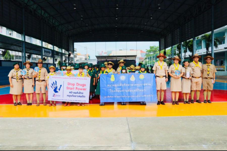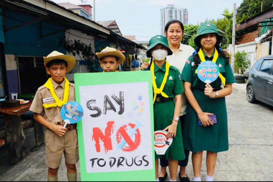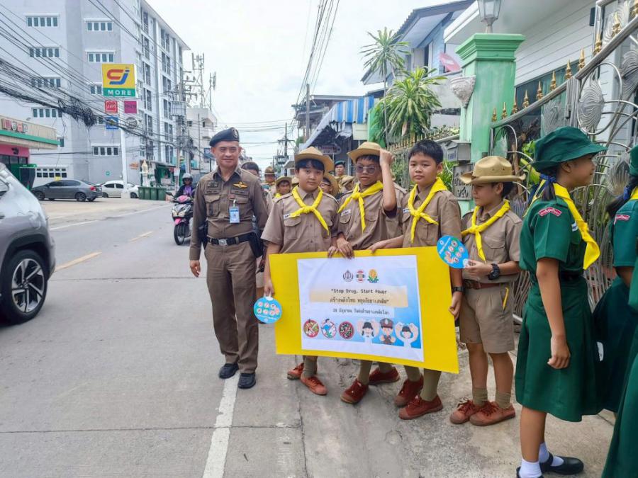 หน่วยลูกเสือจิตอาสาพระราชทาน หน่วยที่ 2 และ 3 เดินรณรงค์และแจกแผ่นพับให้ความรู้เกี่ยวกับโทษภัยและการป้องกันยาเสพติด บริเวณซอยทานสัมฤทธิ์ เนื่องในวันต่อต้านยาเสพติดโลก ประจำปี 2568 S:0