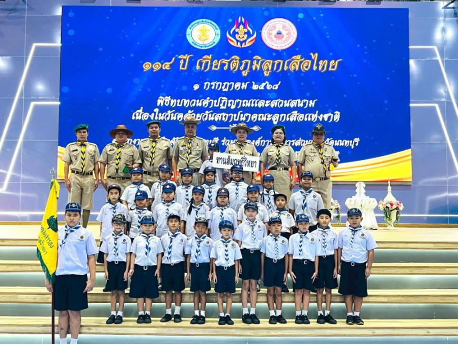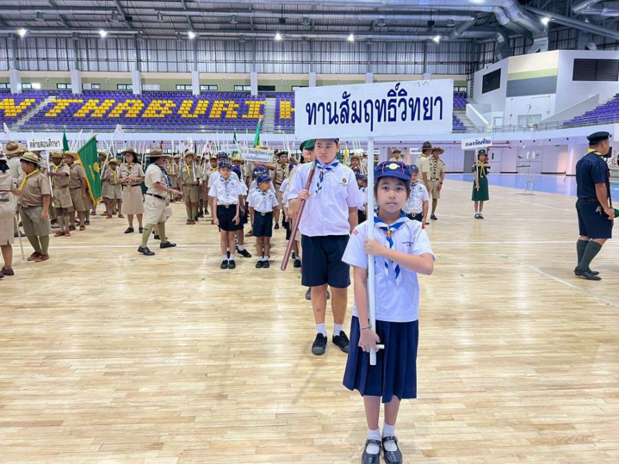 กองลูกเสือสำรอง โรงเรียนทานสัมฤทธิ์วิทยา ร่วมพิธีทบทวนคำปฏิญาณและสวนสนาม เนื่องในโอกาสวันคล้ายวันสถาปนาคณะลูกเสือแห่งชาติ 1 กรกฎาคม ของทุกปี ณ นนทบุรียิมเนเซียม สนามกีฬาจังหวัดนนทบุรี S:0