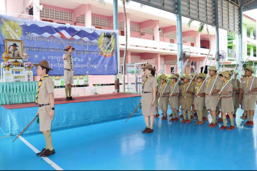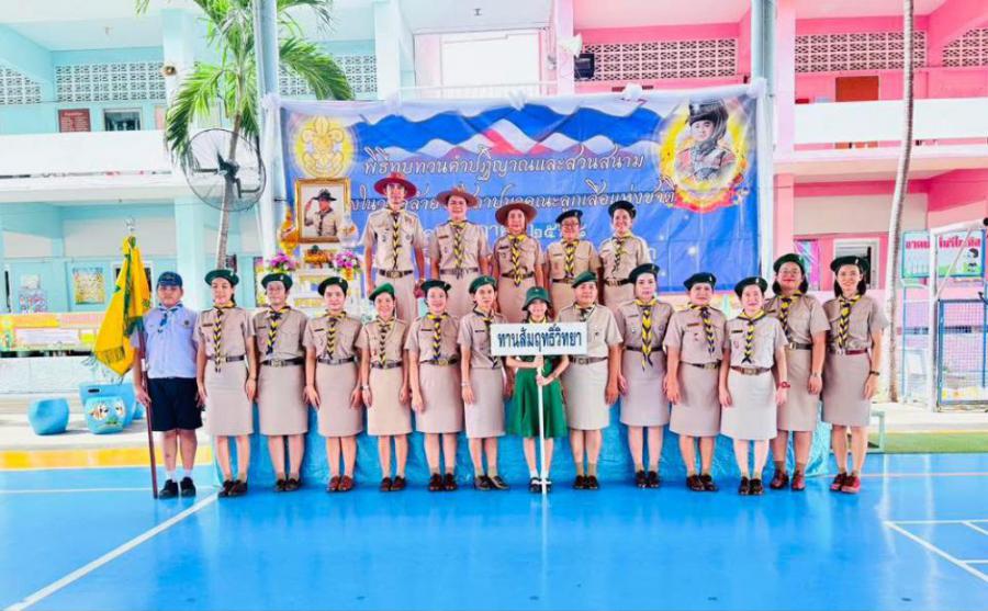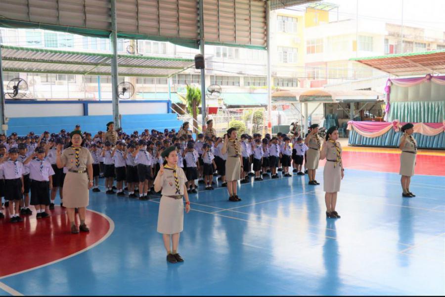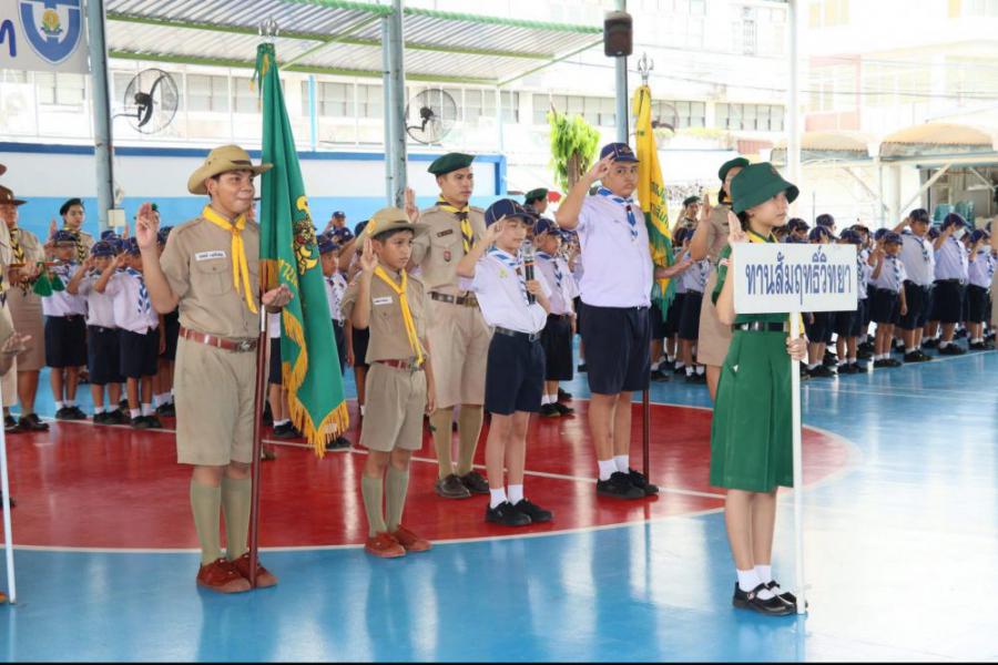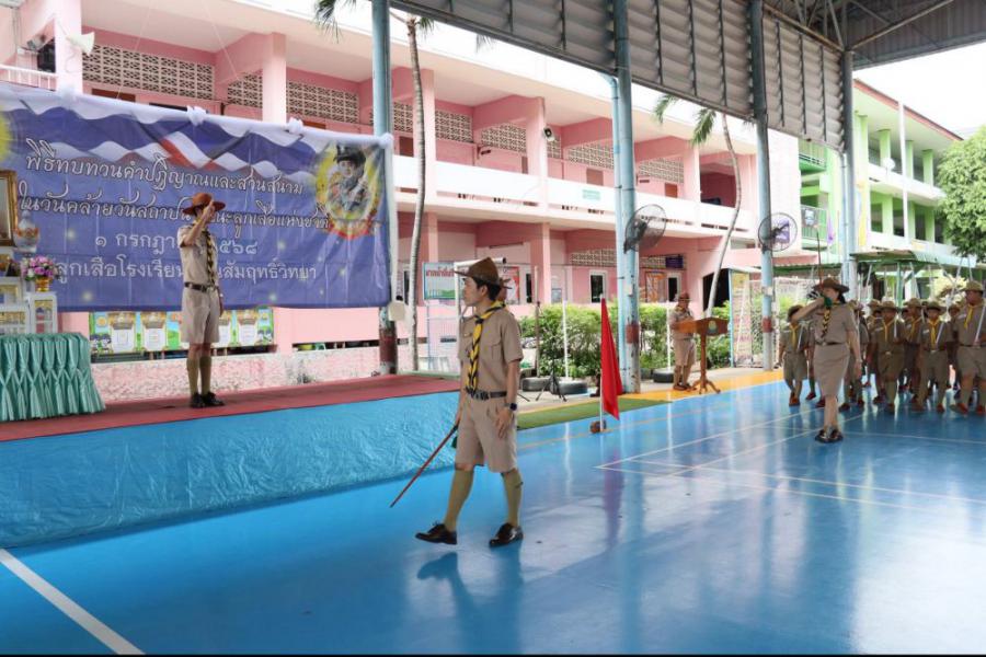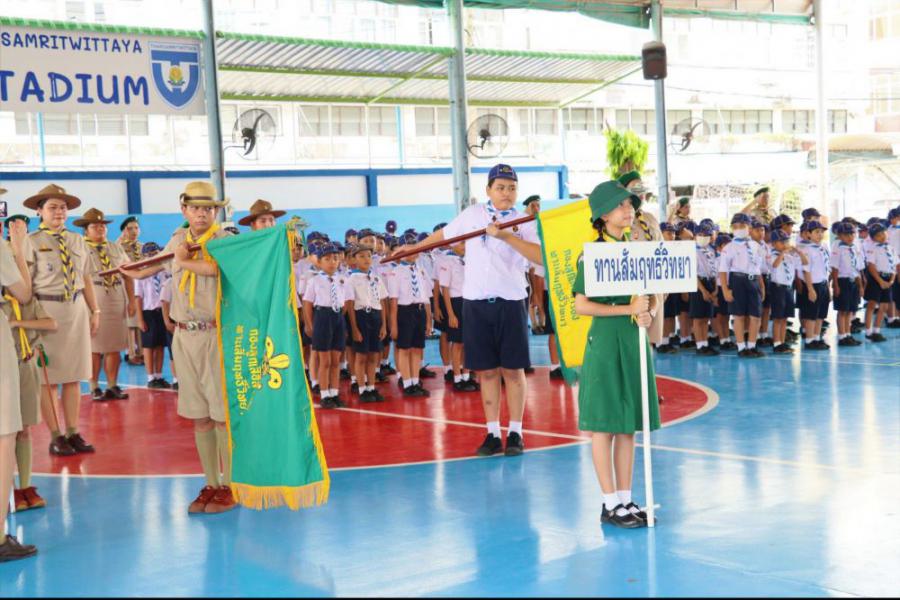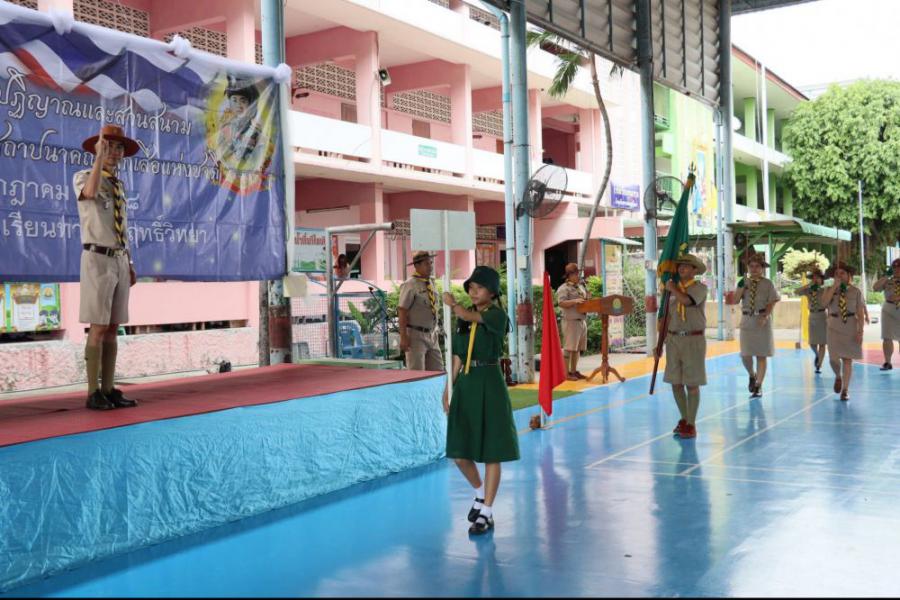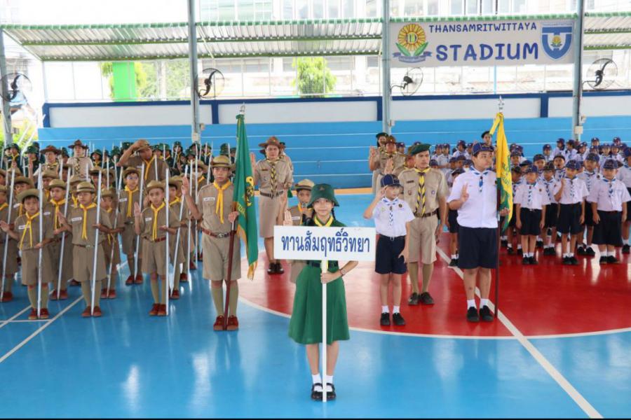 กลุ่มลูกเสือโรงเรียนทานสัมฤทธิ์วิทยา ประกอบพิธีทบทวนคำปฏิญาณและสวนสนาม
