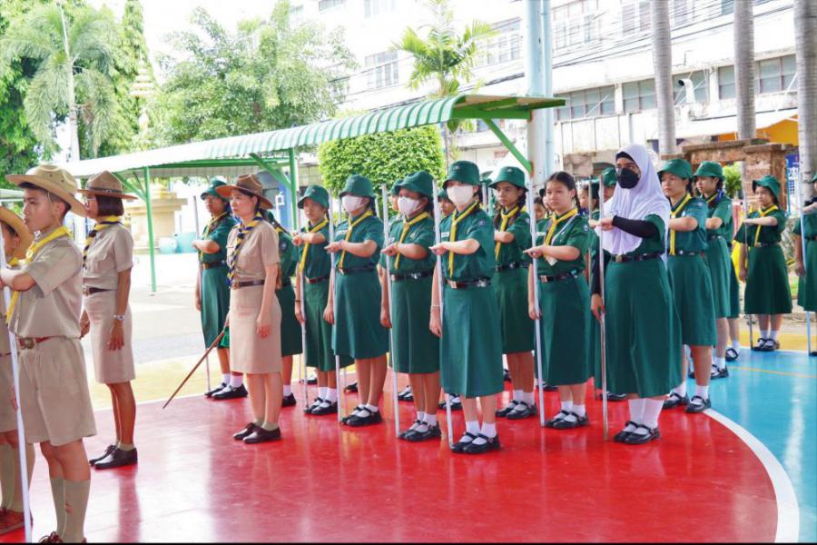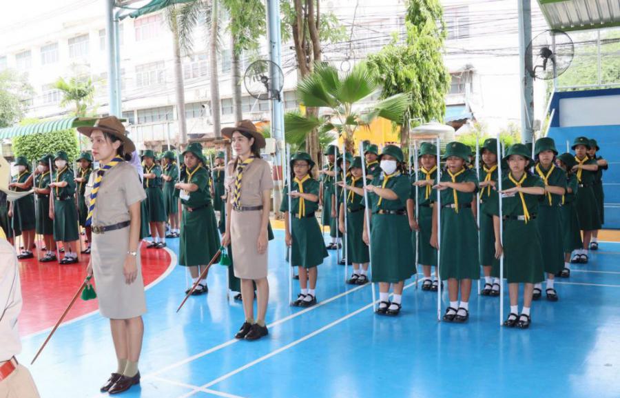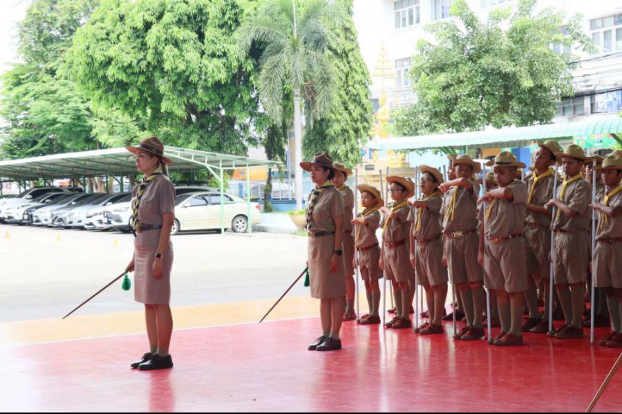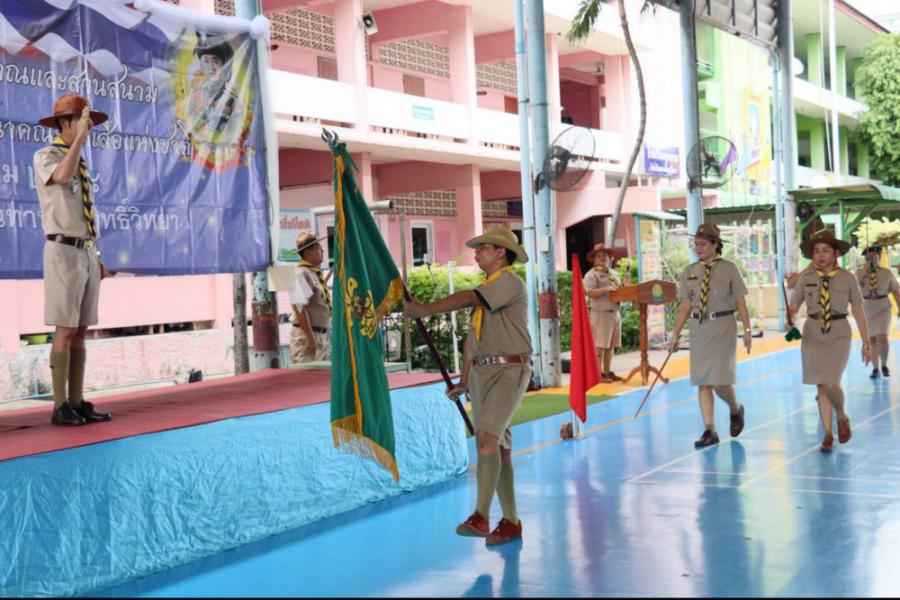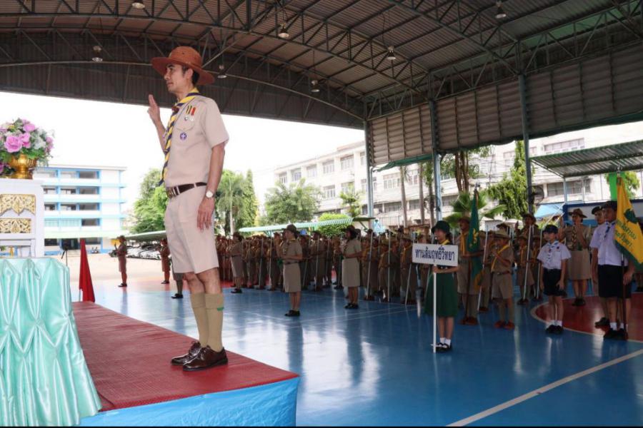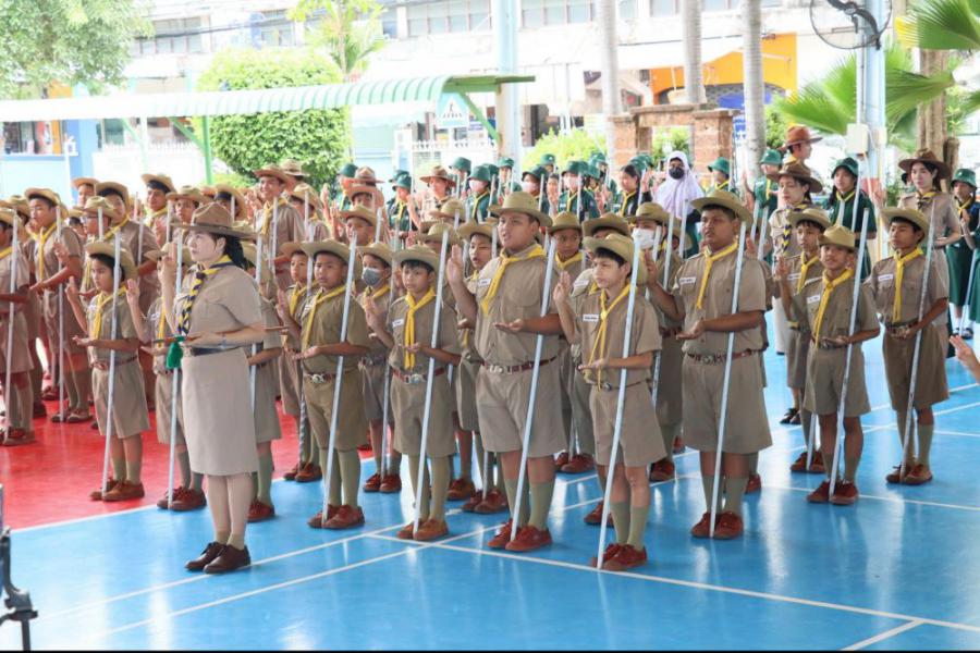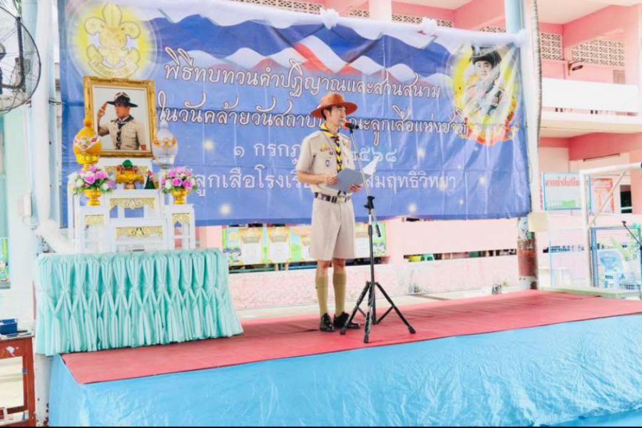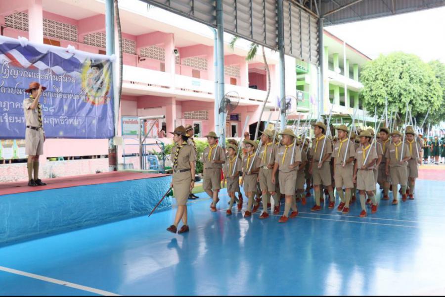 กลุ่มลูกเสือโรงเรียนทานสัมฤทธิ์วิทยา ประกอบพิธีทบทวนคำปฏิญาณและสวนสนาม