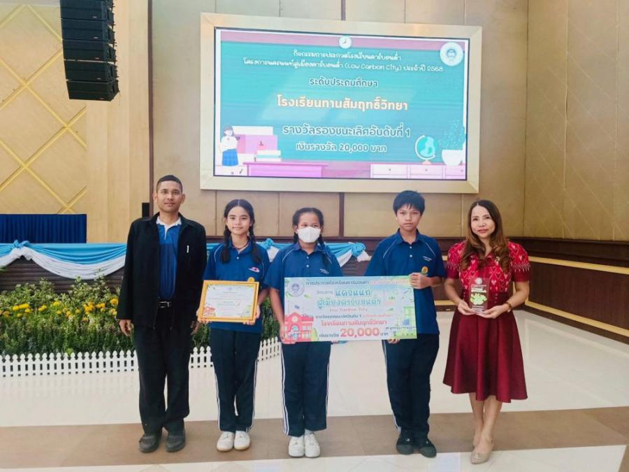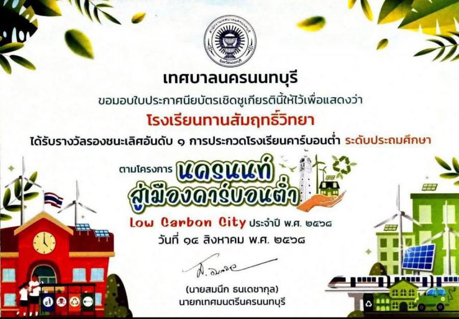 ขอแสดงความยินดีกับครูและนักเรียน ท.ว. ในโอกาสได้รับรางวัลรองชนะเลิศอันดับ 1 การประกวดโรงเรียนคาร์บอนต่ำ ระดับประถมศึกษา โครงการนครนนท์สู่เมืองคาร์บอนต่ำ Low Carbon City ประจำปี พ.ศ.2568 โดยสำนักงานเทศบาลนครนนทบุรี S:0