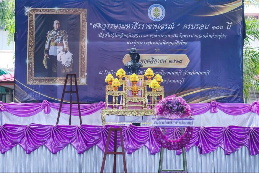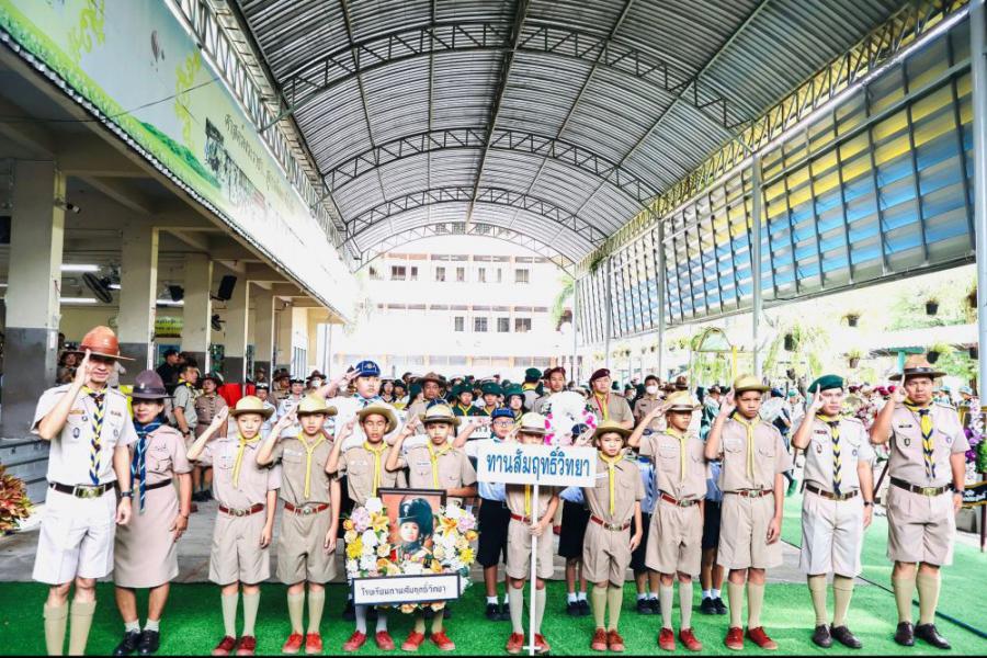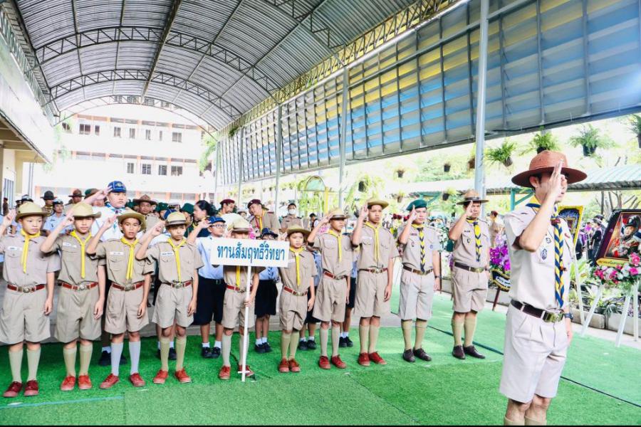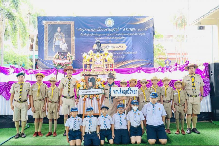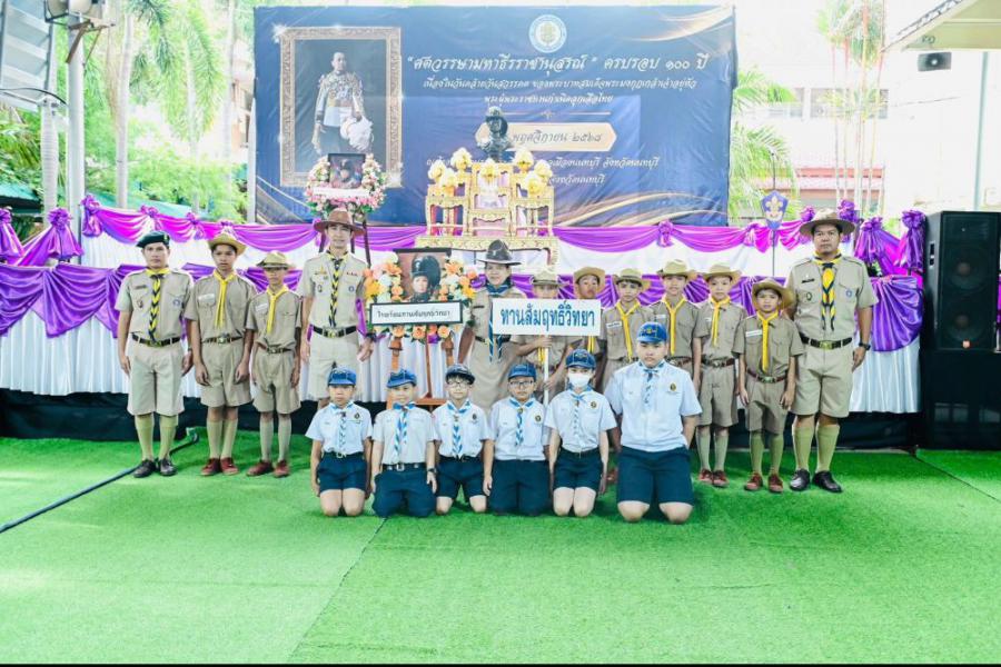 ตัวแทนลูกเสือสำรอง ตัวแทนลูกเสือสามัญ และตัวแทนผู้บังคับบัญชาลูกเสือ โรงเรียนทานสัมฤทธิ์วิทยา ร่วมพิธีถวายราชสดุดี เนื่องในวันคล้ายวันสวรรคต พระบาทสมเด็จพระมงกุฎเกล้าเจ้าอยู่หัว พระผู้พระราชทานกำเนิดลูกเสือไทย ครบรอบ 100 ปี ?ศตวรรษามหาธีรราชานุสรณ์? สำนักงานลูกเสือจังหวัดนนทบุรี ณ โรงเรียนอนุราชประสิทธิ์ S:0