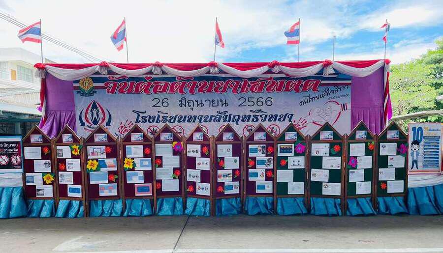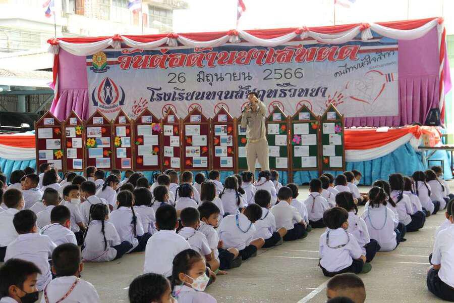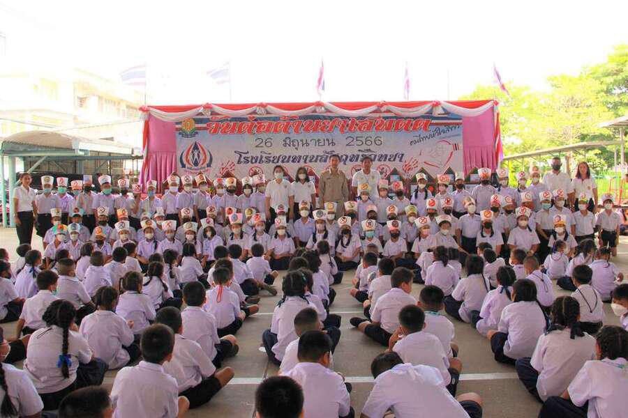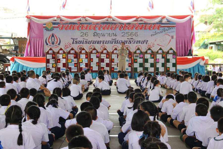 วันที่ 26 มิถุนายน 2566 นายทวิช โคตรชมภู ผู้อำนวยการโรงเรียนทานสัมฤทธิ์วิทยา ร่วมจัดกิจกรรมวันต่อต้านยาเสพติด ปีการศึกษา 2566 S:0